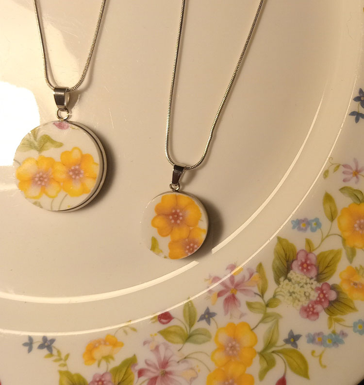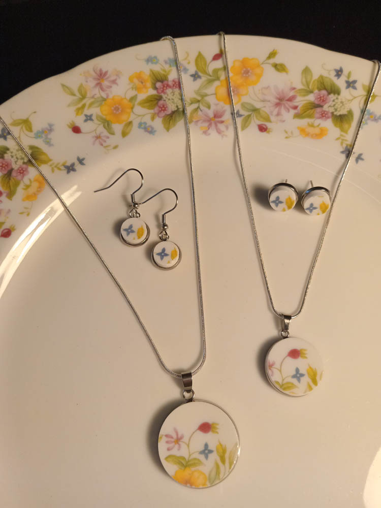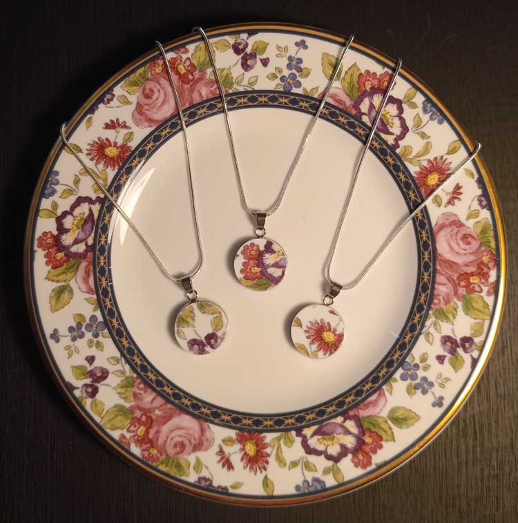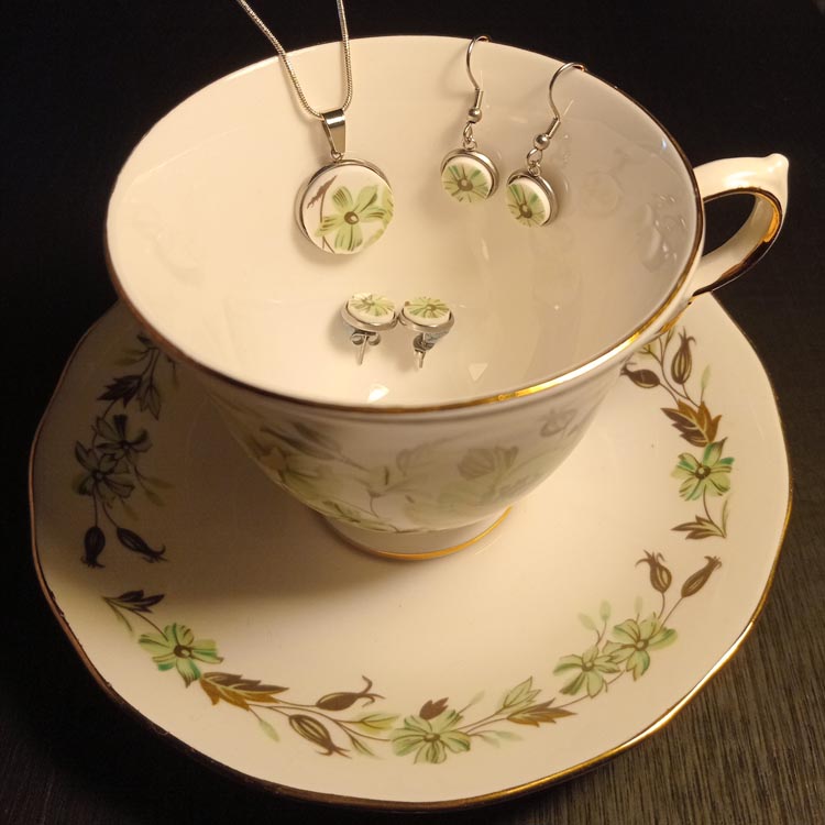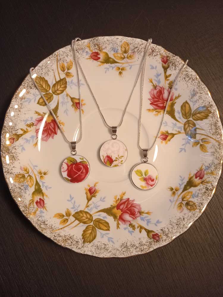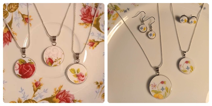 Kathryn and Tracey create jewellery made from beautiful up-cycled vintage china. Each piece is lovingly made by hand in North Wales. Reclaimed china plates are transformed into something new, wearable and unique.