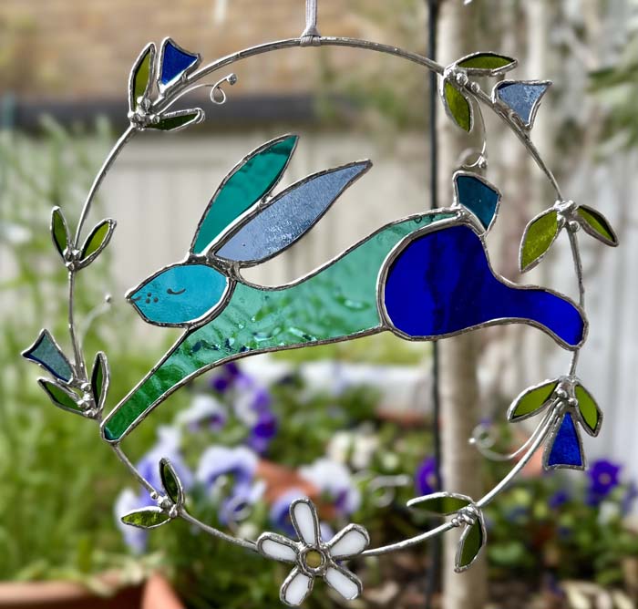 Each piece of glass is selected for its colour, ripples, bubbles and swirls. Put together, these elements create unique reflections which bounce light around a room. To create her smaller decorative pieces the glass is cut by hand; copper foil and solder are applied and finally the glass piece is polished. Traditional lead is used to construct larger panels and windows.