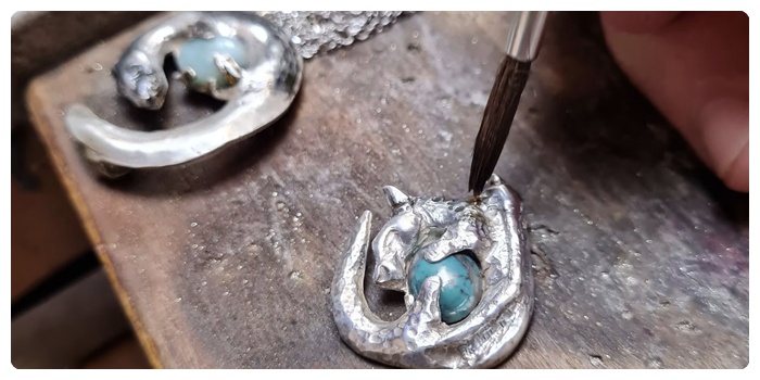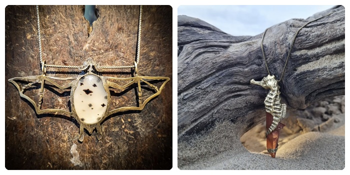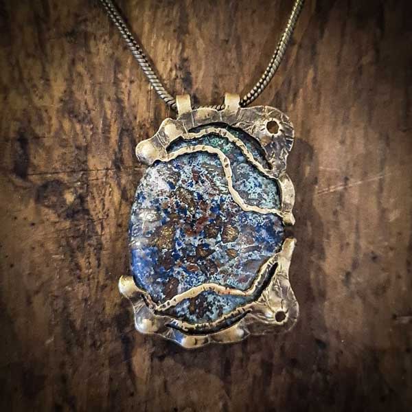 In the years since, his artistry has evolved through the intricate discipline of repoussé. This ancient hammer-formed technique has transformed his work, allowing him to sculpt metal into highly detailed pendants and talismans that echo nature’s textures, myths, and quiet power. Each piece is crafted to be worn by all genders, strong, expressive, and deeply personal.